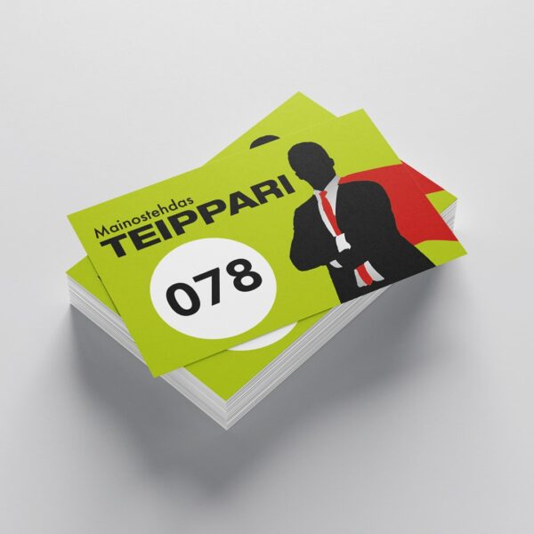 Teipparilta pienet ja suuret erät käyntikortteja erittäin nopealla aikataululla, jopa saman päivän aikana! Esimerkkihinnat: 2-puolinen 100 kpl 85 € 500 kpl 1 72 € 1000 kpl 281 €